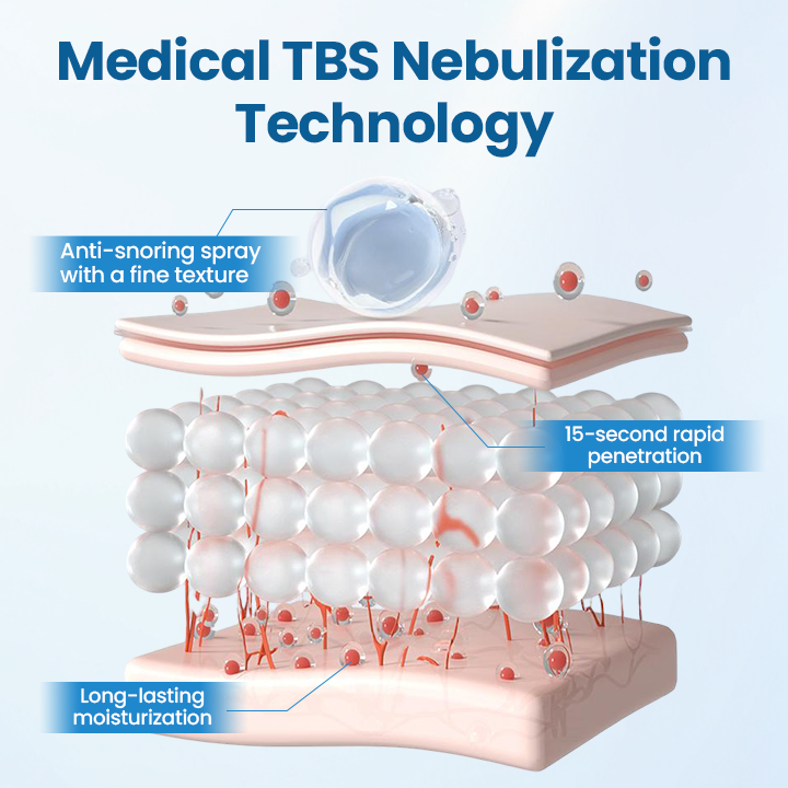 38x Efficiency Advantage – Compared to standard sprays, TBS mist achieves up to 38 times higher tissue absorption, resulting in faster, longer-lasting snore reduction.